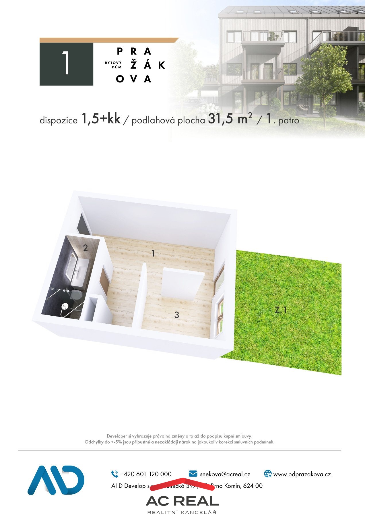Prodej bytu 1,5+kk 31m2 se zahrádkou 71m2 (BJ1)