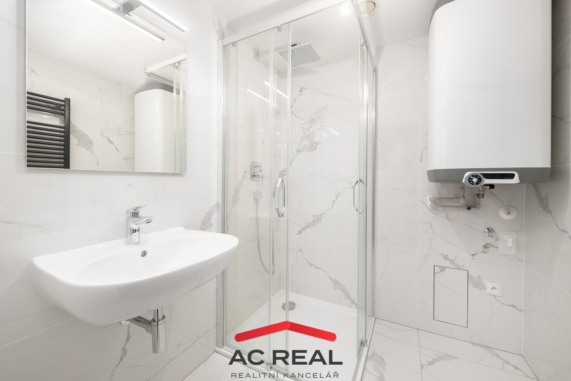 Technický standard: čipový vstupní systém, podlahové topení s ovládáním přes mobil, venkovní žaluzie, centrální rekuperace, dřevěné podlahy Kährs, koupelny: Villeroy & Boch, Kaldewei, Hansgrohe.